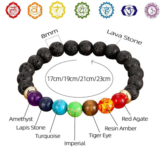 Charm 7 Chakra-Armband aus Lavastein – Yoga, Meditation & Energie-Ausgleich